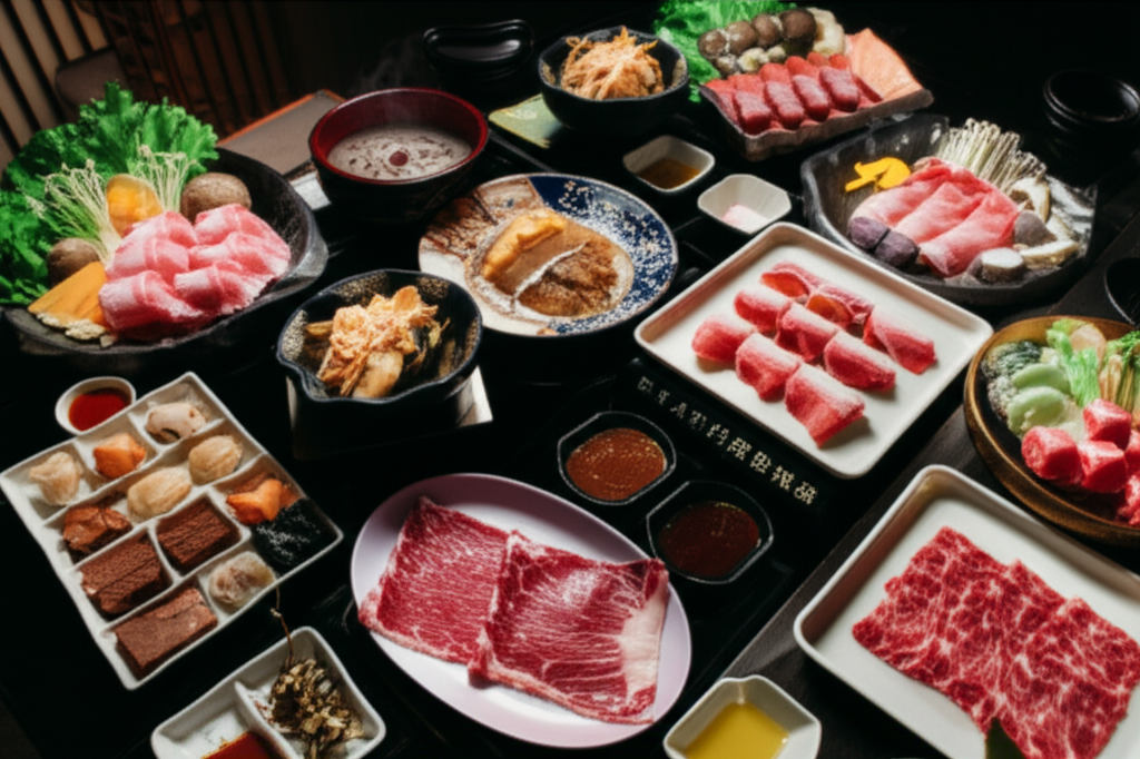 – 特色:提供多種不同部位的頂級和牛,以及新鮮的海鮮,湯頭選擇多樣,有昆布湯、壽喜燒等。